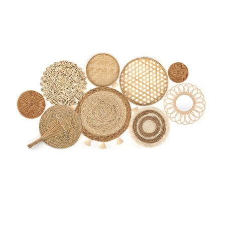 Décoration murale à suspendre Décoration murale en rotin biodégradable Miroir plat rond en osier tissé Macramé Glands Tapisserie murale en bambou
